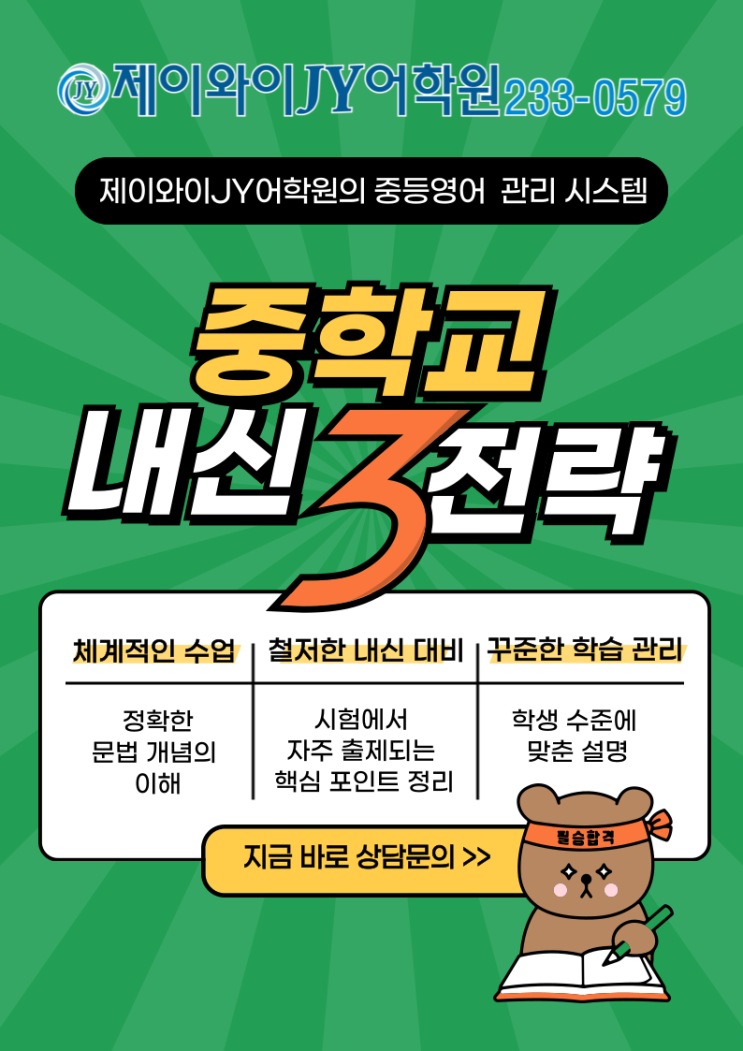 [청주 개신동 영어학원 어학원 제이와이와이JY어학원] 서경중 영어 내신, 열심히 공부하는데 성적이 오르지 않는 이유