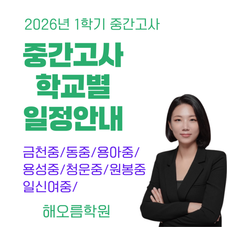 2026년 청주 금천동 동남지구 중학교 중간고사 일정 총정리 원봉중 · 용암중 · 용아중 · 청운중 · 금천중 동중 청주 금천동 동남지구 중학교 2026년 1학기 중간고사 일정이 대부분 확정되었습니다. 시험은 4월 마지막 주부터 시작되며, 대부분 학교가 4월 27일 ~ 5월 1일 사이에 진행됩니다. 아래 중학교 중간고사 일정 캘린더를 참고하시면 한눈에 확인할 수 있습니다. 청주 중학교별 시험 일정 원봉중 4월 28일 ~ 29일 용암중 4월 27일 ~ 29일 용아중 4월 29일 ~ 30일 청운중 4월 29일 ~ 30일 일신여중 미공지 용성중 4월 30일 ~ 5월 1일 동중 4월 29일 ~ 30일 금천중 4월 30일 ~ 5월 1일 시험 준비는 언제부터 시작해야 할까? 많은 학생....... <img src="https://blogthumb.pstatic.net/MjAyNjAzMTRfMjM5/MDAxNzczNDk2NDY2ODI1.Mg4dDCgDFM9dUwTBKGI5UoBYsq7PcZFWapW4pgMWenAg.bQRnBs33LaBNA-QEIaVTAIv7ewoClkcTZ8gwqxRmvQog.PNG/900%A3%DF1%A3%DF20260314%A3%DF225345%A3%DF0000.png?type=s3" />