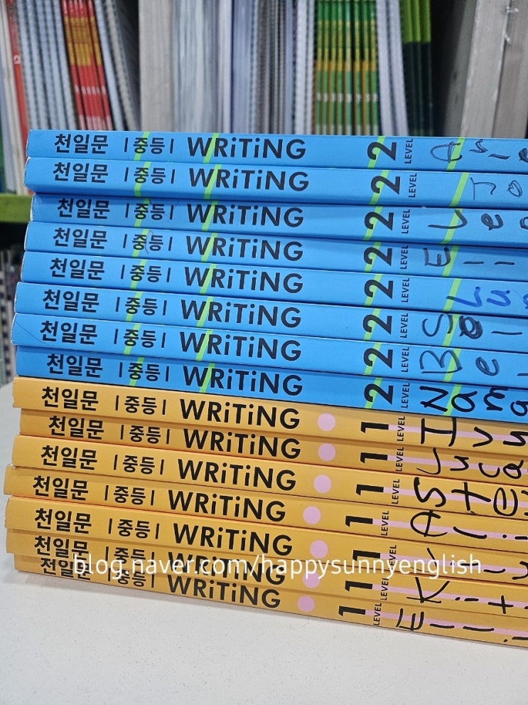 안녕하세요. 영어아웃풋 교육전문가 해피써니잉글리쉬학원입니다. 좋은 교재를 만났을 때의 기쁨은 선생님이라면 부모님이라면 학생이라면 누구나 공감하리라 믿습니다. 오늘은 해피써니잉글리쉬학원에서 사용하는 보물같은 교재 소개합니다. 제가 오늘 소개해 드릴 교재는 바로, '천일문 중등 Writing ' 입니다. 해피써니티처가 사랑하는 교재인 만큼 우리 학생들은 열심히 학습하고 있습니다^^ 천일문 중등 Writing 의 장점 중 하나는 천일문 중등 Grammar 와 함께 사용할 수 있다는 것입니다. 중등 필수 영문법과 객관식 문제로 익히고 서술형 유형별/ 단계별로 함께 공부할 수 있으니 가르치는 선생님도 공부하는 학생도 모....... <img src="https://blogthumb.pstatic.net/MjAyNjAxMTNfOCAg/MDAxNzY4MzExODQyMDky.LIurI_D8i_BPtn18uNuuXhuC-yBWXra9jAZzKjv7GyYg.XCzqPYW-jv0ZJhpnQ_FgcxVvqUNO81w7tj0ScUEKYZEg.JPEG/900%A3%DF1768311840820.jpg?type=s3" />