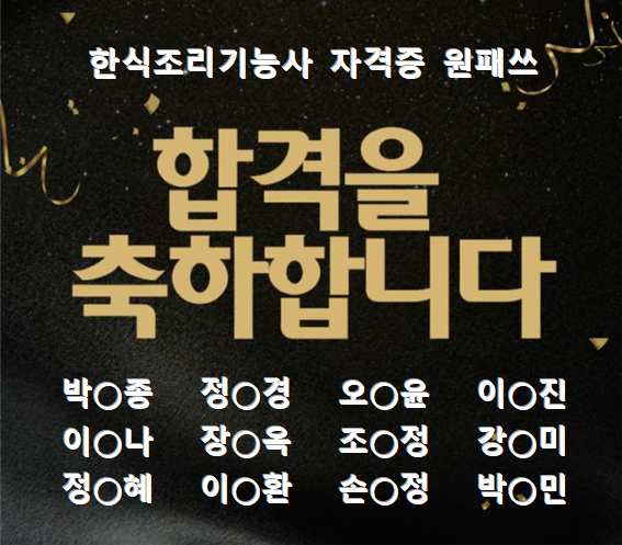 조리기능사 원패쓰를 원한다면 조해성요리학원입니다!!