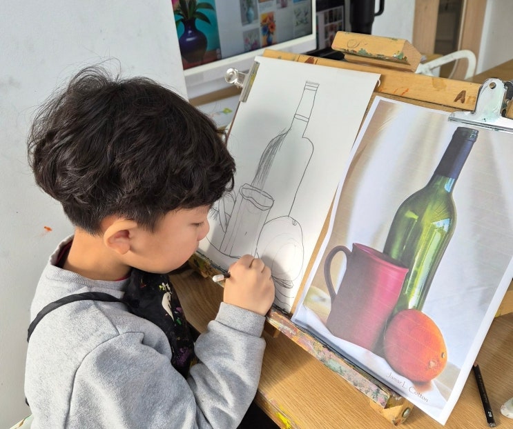 안녕하세요. 플래뮤 청주 율량 미술학원입니다 :) 정물화 이미지를 참고하며 연필로 스케치를 한 후 투명필름 겹쳐 평소와 다른 방법으로 정물화를 예쁜 색색의 도트모양 스티커를 붙여 채색해보았습니다! 스티커로 간단하게 색을 채워가며 명암 단계까지 표현할 수 있어서 성취감을 느낄수있는 수업이였습니다 플래뮤 청주 율량 미술학원 수업 예약 및 상담문의 저희 아트센터는 소규모 예약제로 상담 및 수업이 진행되고 있습니다. 바로상담하기는 아래로 클릭해주세요^^ ☎ 010.6802.9098 플래뮤 청주 율량점 소식을 받아보시려면 아래의 인스타그램을 팔로우 해주세요! 플래뮤청주율량(@plamu_yl) • Instagram #플래....... <img src="https://blogthumb.pstatic.net/MjAyNjAzMDZfMjQx/MDAxNzcyNzY4Nzk5OTE4.OB26Ygq2Kit9S5pjGumSRWbtYN1T1hGFe06_5Dw7h_8g.L9ii3pZiKPA7cJ-SRPobRdMJJtnJjCFwurkD7WPnJMAg.JPEG/img_-_2026-03-06T124505.111.jpg?type=s3" />