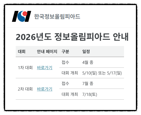 2026 한국정보올림피아드 대회 일정이 나왔습니다.