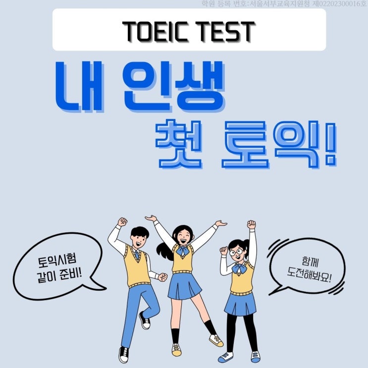 안녕하세요. 위준성주니어어학원입니다. 원장님과 함께 토익시험에 도전할 학생 4명을 모집합니다. 이번 첫 이벤트 참여 4명에겐 응시비 50퍼센트를 지원해 드릴 예정입니다 많은 관심 부탁드립니다. 문의나 참여를 원하면 카톡 webama 또는 문자 , 전화 010-2642-3583 (위준성 원장 직통)으로 연락 부탁드립니다. 주소 : 마포구 서강로 3길 5 2층, 3층 위준성주니어어학원 (6호선 광흥창역 1번 출구에서 도보 3분, 광흥창역 스타벅스 맞은편) <img src="https://blogthumb.pstatic.net/MjAyNjAxMTBfMjEz/MDAxNzY4MDE1NzczNDI2.M1N8cKcuHSzivmQp5WHjZXSNdmS7Lj0ie3xLSbqISrIg.KHa5vtmEXJgmsSAItNngaBPCpx8q0qCoNwYhTFDSYWMg.JPEG/KakaoTalk_20260108_162301817_01.jpg?type=s3" />