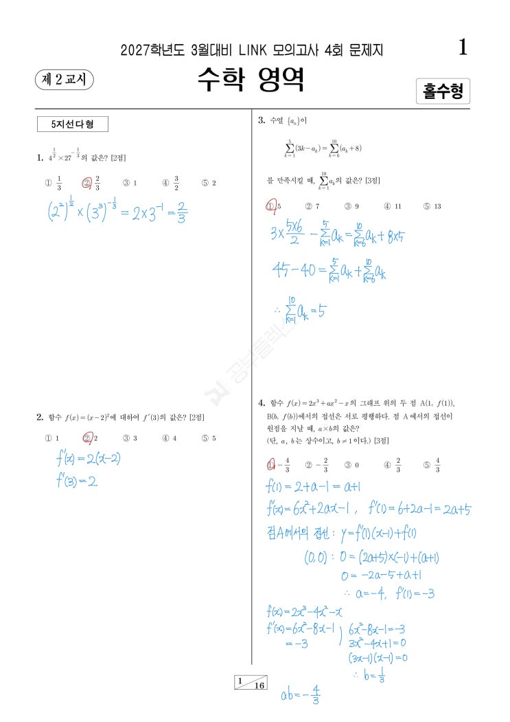 3월 학평대비 고3 LINK 모의고사 4회 공통과목 손풀이