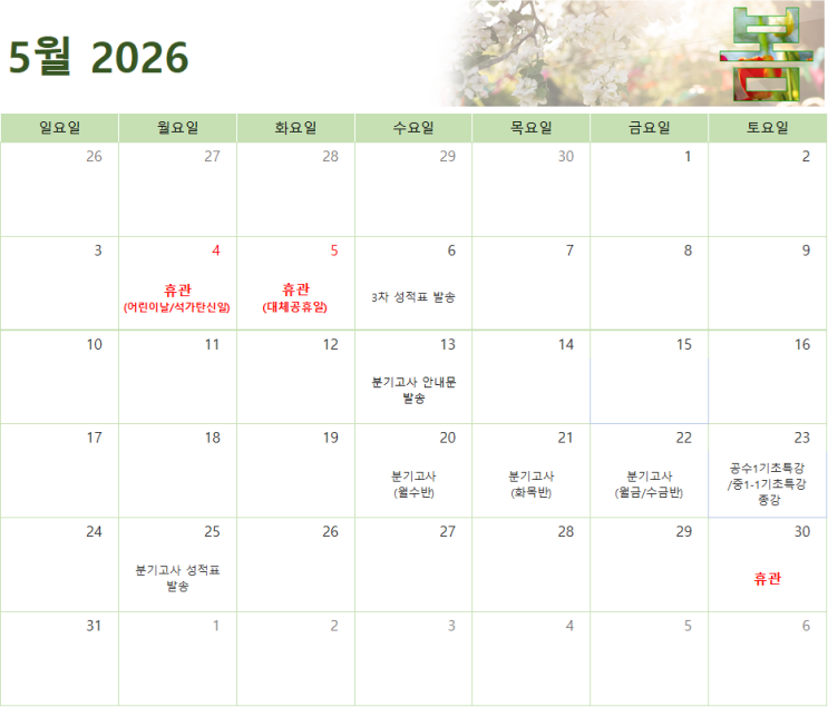 [CMS마포교과관] 2026년 봄학기(3~5월) 학사일정