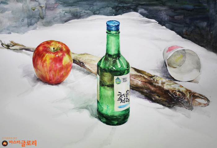 안녕하세요~ 홍대미술학원 마스터글로리 미술학원입니다 오늘은 오랜만에 정물수채화 그림을 들고 왔는데요 입시 그림에 대해 설명할 때 밸런스가 항상 강조되는데 정작 정물수채화에 대한 밸런스는 이야기를 많이 해본 적이 없는 듯 하여 오늘은 기출이면서 기본적인 문제 제시로 초반 과정을 함께 보며 이야기를 나눠볼까 합니다 그럼 그림부터 바로 만나보실게요! 오늘 그릴 문제에는 소주병, 북어, 사과, 종이컵, 흰 천이 제시되었네요 정물들이 중앙에 모여있는데 상황인데요 물체 간의 관계를 잘 생각한 후 그림이 어떻게 보일지에 미리 머릿속으로 한번 그려보고 스케치를 진행해줍니다 단순히 대상을 그림으로 옮기지 말고, 채색을 어떻....... <img src="https://blogthumb.pstatic.net/MjAyNjAzMTlfNTMg/MDAxNzczODkyMjg0OTg1.EIQ8_IRPabUeLqBLJw5RIMre928OczVeeQoGiki8M-sg.JxeXbaPlK4YARLilCrm0J7E-Z2hoJMCMJHdaUZHKmN0g.JPEG/370-5.jpg?type=s3" />