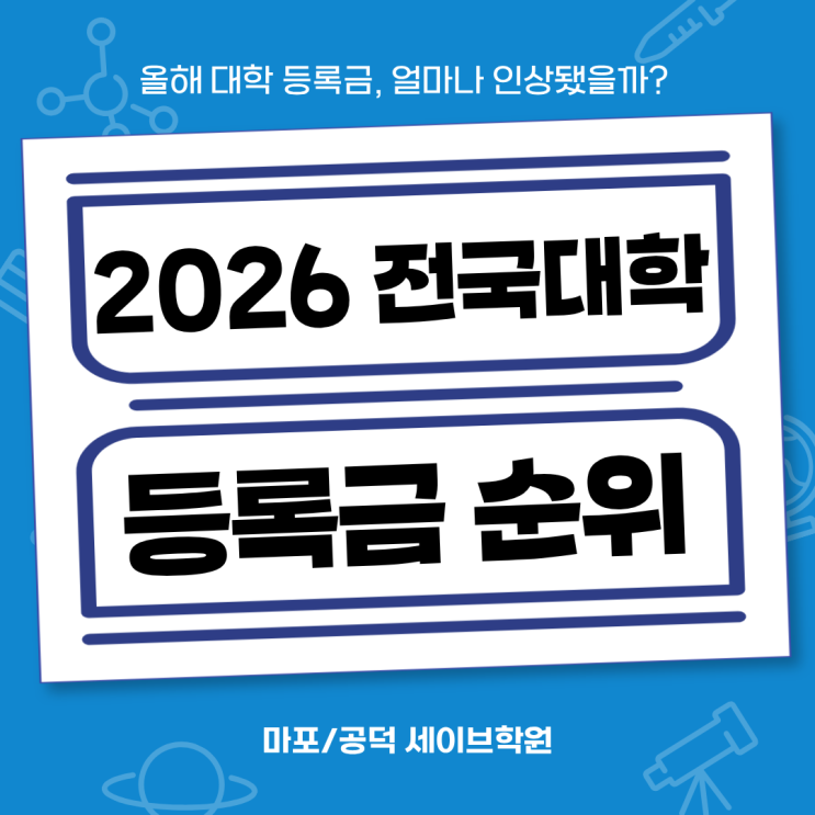 안녕하세요, 세이브학원입니다! 2월의 끝자락에 들어서면, 학부모님들과 학생들 모두 마음이 묘하게 분주해집니다. 종업식과 졸업식이 모두 지나가고, 이제는 정말로 '새 학년'이 눈앞에 와 있다는 실감이 드는 시기이기 때문입니다. 학원 스케줄과 자습은 어떻게 비율을 조정해야 할지, 3월 모의고사 준비는 제대로 되고 있는지까지 여러 문제들을 생각하다 보면 하루에도 몇 번씩 머릿속이 복잡해지곤 합니다. 이는 또다른 시작을 앞둔 N수 학생들에게도 마찬가지일테고요 :) 이렇듯 몸도 마음도 복잡한 시기에, 유난히 뉴스에서나 신문에서나 종종 들려오는 이야기가 하나 더 있는데요. 바로 대학 등록금입니다. “요즘 대학 등록금....... <img src="https://blogthumb.pstatic.net/MjAyNjAyMjRfMzIg/MDAxNzcxOTIwNzAyNDc4.WB4rwa1WYQ8Z59KMy-74UasoGoZ3URCxBGvyUtHtMZ4g.n40MNfAflsbSROSs0wrjcV7GkZVZG2YC3Cm6qyEFMuUg.PNG/%C1%A6%B8%F1%C0%BB_%C0%D4%B7%C2%C7%D8%C1%D6%BC%BC%BF%E4..png?type=s3" />