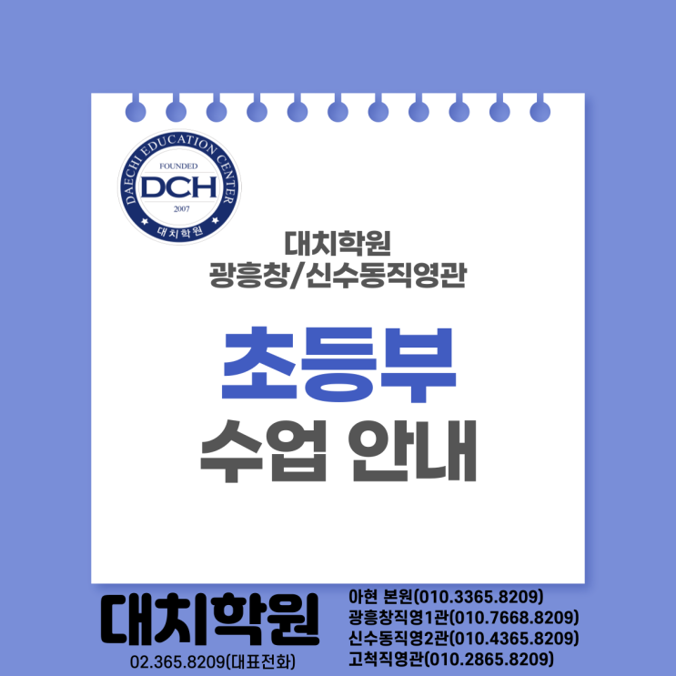 [대치학원 광흥창/신수동직영관] 초등부 수업 안내
