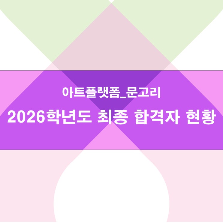 #수시합격 #정시전원합격 #한예종_합격 #가천대_합격 #계원예대_합격 #국민대_합격 #인하대_합격 아트플랫폼_문고리 미술교육학원 26학년도 입시 최종 합격자 명단 올 한 해 자신의 도전과 가능성을 향해 최선을 다한 우리 학생들 모두에게 무한한 수고와 격려의 마음을 전하며, 그 찬란했던 걸음마다 순수함으로 가득했던 열정의 시간들이 단단히 뿌리내려 지지하고 있음을 알고 있습니다. 학생 개개인마다 자신만의 색으로 피워낸 꽃. 매 순간 아름답게 피어나고, 매 순간 아름답게 노래하는, 쿵쿵 뛰고 있는 온전한 시간들이 가슴속에 피어있는 것을 보며 아주 행복했습니다. 내적 풍요의 가치를 이해하며 계속해서 자신만의 이야기를 써 내려....... <img src="https://blogthumb.pstatic.net/MjAyNjAyMDlfMTg0/MDAxNzcwNjI1NTk2NzMy.lSBPvGmi0TmQeNUQLYwJuTfrag5yIfL6KDMJR9rGgGgg.fQuzsLLVq6S6cQG5FpT9Gfl9SgTtaB8nUCuescgE26kg.JPEG/%C3%D6%C1%BE_%C7%D5%B0%DD%C0%DA_%C7%F6%C8%B2.jpg?type=s3" />