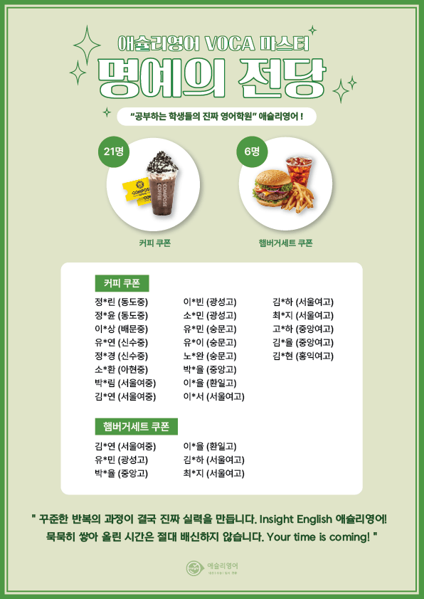 [어휘관리에 진심인 애슐리영어] VOCA 마스터 명예의 전당