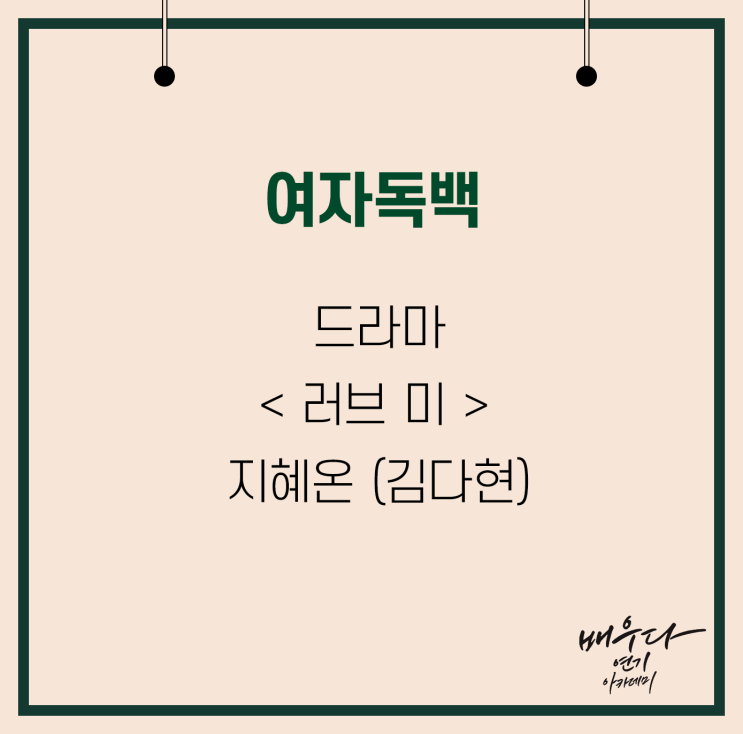 드라마 < 러브 미 > 7화 지혜온 (김다현) 여자독백 지혜온 : 너 왜 맨날 여기 앉아 있냐? 갈 데 없으면 오는 데가 여기냐? 내 집이 그렇게 만만해? 서준서 : 왜 그렇게 까칠하게 대해? 지혜온 : 왜 왔는데? 서준서 : 너 얼굴은 또 왜 그래? 지혜온 : 왜 왔냐고. 서준서 : 미안하다고 해야 될 거 같아서. 지혜온 : 하… 뭐가 미안한데? 서준서 : 나는 솔이랑 헤어진 지도 얼마 안 됐고, 그리고… 지혜온 : 됐어. 내 감정은 내 감정이고 너한테 바라는 거 없어. 그러니까 더 말 안 해도 돼. 서준서 : 그래. 지혜온 : 아, 바라는 거 있다. 서준서 : 뭔데? 내가 할 수 있는 거면 다… 지혜온 : 너 그 인턴, 꼭 다시 한다고 해. 서준서 : 어? 지....... <img src="https://blogthumb.pstatic.net/MjAyNjAyMjdfMTMg/MDAxNzcyMTczMjcyMTAx.NsN1bpIr1-phlMBcaRvjasjH4fPSvXgGgwyjvxT6_p8g.PsiFzd6assvTjXgDdMMVhLK3XzoyWOPS5ryWAbhOIOcg.PNG/%B7%AF1.png?type=s3" />