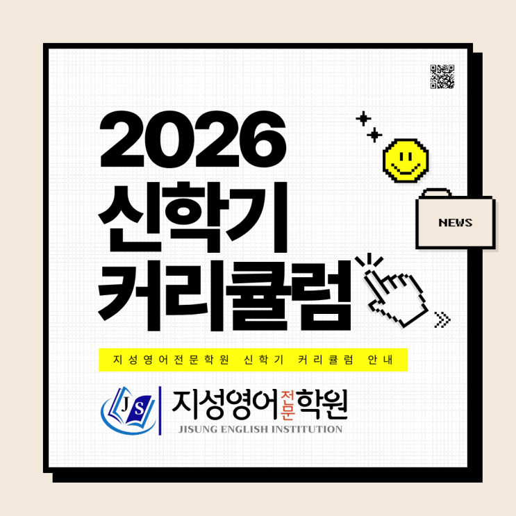 안녕하세요, 지성영어학원입니다. 설렘과 긴장 속에 3월 신학기가 시작되었습니다. 새로운 교실, 새로운 선생님, 그리고 한층 어려워진 교과 과정까지— 우리 아이들에게는 기대만큼이나 부담도 큰 시기입니다. ✨ “시작이 반이다.” 지금의 다짐과 노력이 1년을 결정합니다. 지성영어학원은 낯선 변화와 어려워진 과정 속에서도 흔들리지 않고 몰입할 수 있도록, 논리적이고 탄탄한 기초를 쌓아갈 수 있도록 2026 신학기 커리큘럼을 체계적으로 준비했습니다. 영어가 더 이상 어려운 과목이 아니라, 전략적으로 점수를 만드는 과목이 될 수 있도록 아이들과 함께하겠습니다. ────────────────── 초등부 – 자....... <img src="https://blogthumb.pstatic.net/MjAyNjAzMDRfNDgg/MDAxNzcyNjA3MTYzNzI4.9_44Ma8c9BP7ArR0nN-PYW4ZV-oCGu8-o3hdkZwfJc8g.6wYdomojPr2-k1MkufAnGRmpaaM65MUk9Z0f5lMZOLsg.PNG/%C1%A6%B8%F1%C0%BB_%C0%D4%B7%C2%C7%D8%C1%D6%BC%BC%BF%E4._%282%29.png?type=s3" />