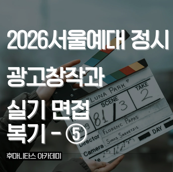 안녕하세요. 표현, 그 너머를 바라보다. 후마니타스아카데미입니다. 이번 글은 실제 시험 직후 정리된 서울예대광고과면접후기를 바탕으로, 서울예대광고과 정시 실기에서 서로 다른 판단 포인트를 보여준 A학생과 B학생 사례를 함께 정리한 포스팅입니다. 먼저 A학생의 경우, 제시된 이미지의 ‘얽힘’ 현상을 광고안으로 풀어내는 데까지는 도달했지만 스토리보드의 의도를 문장으로 명확히 정리하지 못한 점이 가장 큰 아쉬움으로 남았습니다. 두 번째 질문에서 한 줄로 의도를 요구받았음에도 시간 종료로 마무리하지 못해 본인 스스로도 아쉬움을 많이 느낀 사례입니다. 이는 서울예대광창과정시복기 관점에서 보면, 표현보다 의도 요약의 우....... <img src="https://blogthumb.pstatic.net/MjAyNjAxMzFfMjkx/MDAxNzY5ODQ2NjA0NTM0.a1FA617hz63ztdNwrjlNqFEOPDX__lR5t4EXFLlHvdEg.8FpjaG4b31IGTPay0bvidu_XIvevSTud5UdVUYN22Cwg.PNG/%EC%A3%BC%EC%84%9D_2026-01-31_170243.png?type=s3" />