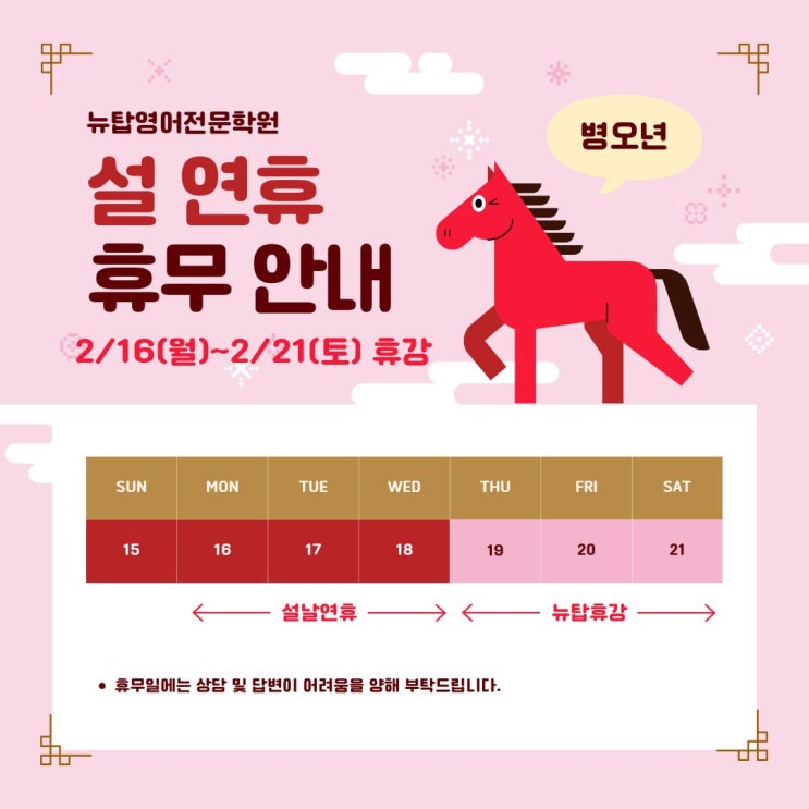 뉴탑영어전문학원 l 신수동영어학원 설 휴무 안내