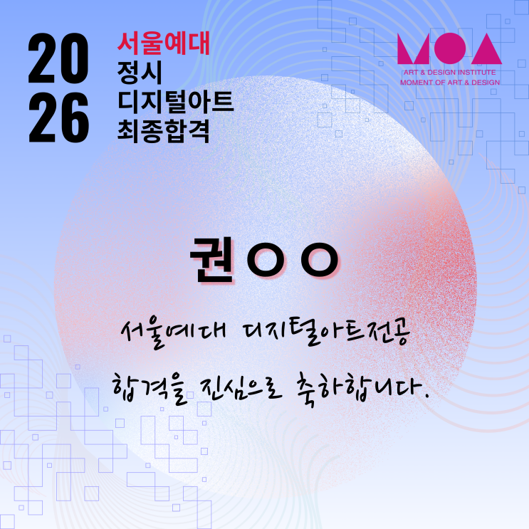 2026학년도 서울예대 정시 디지털아트 전공 최종합격자!
