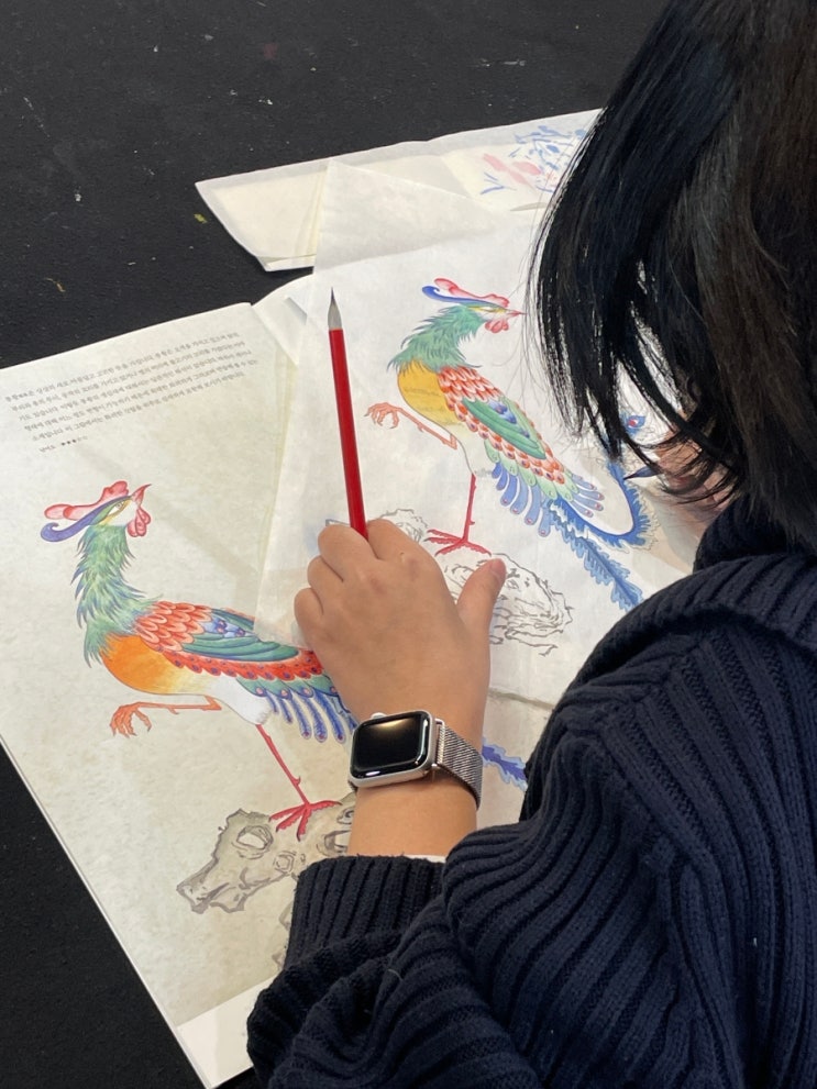 민화 첨 시도 해 보신 회원님이세요 그동안 수채화 크로키 등등 많은 장르들을 섭렵하시다가 이제 민화와 한국화로 정착하시려고 합니다 이쁘고 오색찬란 디테일샷 들어갑미다 오미!!! 요거는 저의 책 도안집을 보고 그리신 거랍니다 오랜만에 책도 첨부 해 봅니다 #수경화실 #민화 #채색화로시작하는민화그리기 #민화채색화기초도안집 #취미민화 <img src="https://blogthumb.pstatic.net/MjAyNjAyMTBfNjEg/MDAxNzcwNjkwMzg5NTYx.uI6bX1SPJCBOHr8iNmaIrtDMD8Q2uwIvw1Zdz3Xpegog.CMYM2Y1TIbChHCutTX4b5dlEEluc7EHJ_49DGrHYtz0g.JPEG/900%A3%DFIMG%A3%DF1946.JPG?type=s3" />