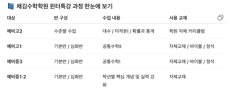 안녕하세요 수펙트럼수학 대치동 레몬쌤입니다 새해 겨울 방학 특강 1/5 부터 시작합니다 (아직 방학 전인 학생들은 개별 일정 안내드렸습니다) 26년의 시작! 1월 일정 안내드립니다 특강 수업은 오전 11시~ 정규반 수업은 오후 3시~ 시작합니다 일정 확인하시고 문의 사항은 학원으로 연락주세요! 겨울 방학 특강과 함께 새 학기 준비 열심히 하겠습니다! 수학 스펙트럼의 확장! 수펙트럼수학입니다 <img src="https://blogthumb.pstatic.net/MjAyNjAxMDRfMjU1/MDAxNzY3NTM0NTgyNzQ5.TGHcLTMxgw89U47hjdPSb6wFCZCQ0uWtDqSdMUI4fKQg.MV9ppz_IHd02UXaGLm8te8y7jEOixoIauiHpBCUrcgwg.PNG/image.png?type=s3" />