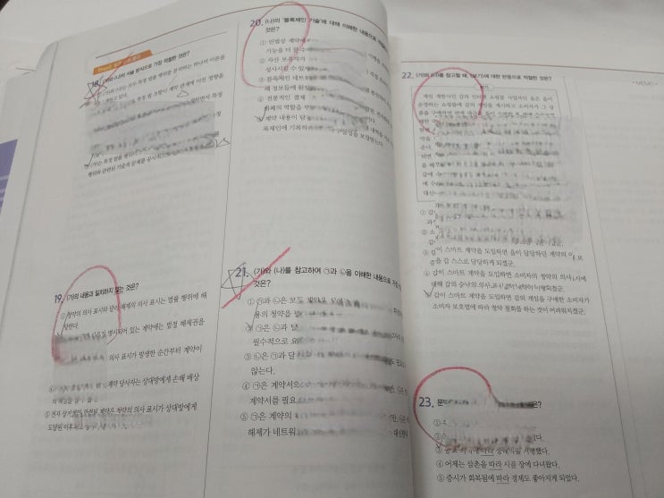 국어 문제 50문제씩, 100문제씩 풀고 뿌듯한 마음이 되었던 경험이 있는지 학생들에게 묻곤 합니다. 주로 개강 시즌, 신규 원생이 들어왔을 때 자주 하는 질문이죠. 학생들은 문제를 많이 풀면 자동으로 점수가 오를 것이라고 착각을 하거든요. 네, 착각입니다. '양치기의 함정'이라고 하죠. 공부를 좀 하는 학생이라면 학원을 여러 개 다닐 테고 숙제도 적지 않을 거예요. 그런 가운데 문제를 많이 푼다? 당연히 대충 푼다는 뜻이죠. 그런 학생의 문제집을 보면 대개 이렇습니다. 문제집이 깨끗해요. 이런 학생들 특징입니다. 문제를 많이 푼다 채점만 하거나 틀린 문제는 해설지 한 번 보고 넘어간다 이런 식으론 100문제를 풀어도 단....... <img src="https://blogthumb.pstatic.net/MjAyNjAzMTNfMjM4/MDAxNzczMzcyMDc2NTUy.s0wSHCis1-CWzRp3i80pUzp5w4DanApFlcXQxiRHpjUg.aDpXm-nSVph8i9lK_n2BPE1TjKDjRVn_sbvscXHeijQg.JPEG/KakaoTalk_20260313_111938910_02.jpg?type=s3" />