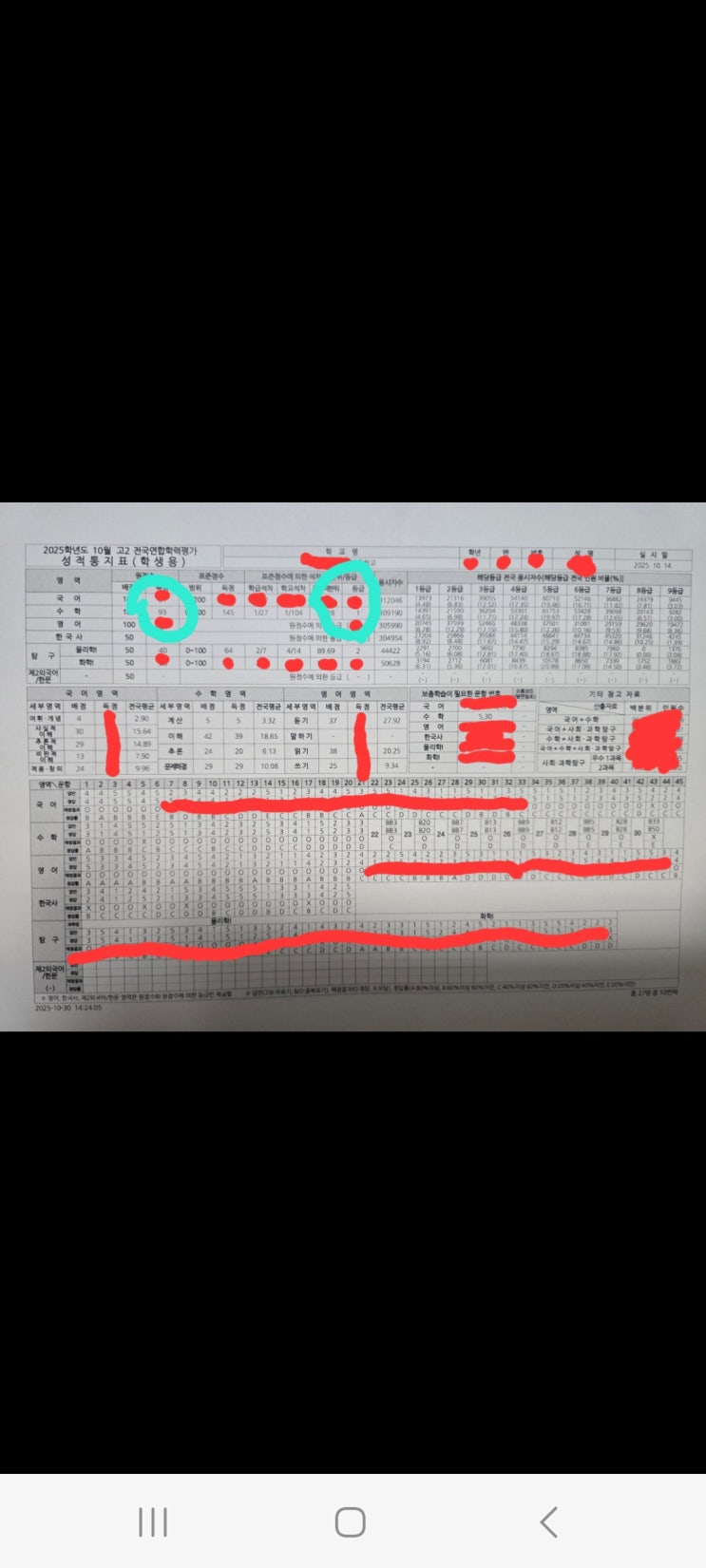 2025년10월 고2모의고사 92점 전교1등 1등급