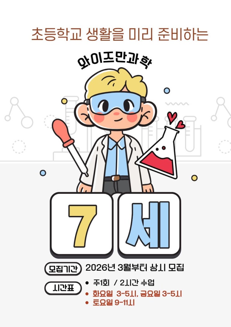 "초등학교 가기 전에 과학 수업이 필요할까요?" 안녕하세요. 20년간 실적으로 증명된! 목동에 위치한 수학 과학 전문학원 와이즈만 양천센터입니다. 초등학교 입학을 앞둔 학부모님들이 많이 하시는 고민 중 하나가 있습니다. "초등학교 가기 전에 어떤 준비를 해주면 좋을까?" 요즘 초등학교 수업은 단순히 책으로 배우는 것이 아니라 직접 관찰하고, 실험하고, 생각하는 탐구 중심 수업이 많아졌습니다. 그래서 초등 입학 전에 과학적 호기심과 탐구 경험을 만들어 주는 것이 아이들의 학교 적응에도 큰 도움이 됩니다. 와이즈만 7세 과학 수업 와이즈만 7세 과학은 초등학교 과학의 기초 개념을 자연스럽게 이해하고 아이....... <img src="https://blogthumb.pstatic.net/MjAyNjAzMTZfMjU4/MDAxNzczNjU1OTAyNzQ1.iXp8oowMwibtOZs6reLoZSFAmr43o-ArfihoKMLCqRog.-UBjBpcwmHSCO6pQP2JIQx4HkvpMfPW0LQDmKyGzJZEg.JPEG/KakaoTalk_20260311_165540379.jpg?type=s3" />