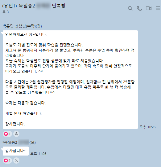 깡~, 함께 만들어가는 따뜻한 이야기✨ 안녕하세요, 깡~입니다! 우리 학원에서는 선생님들과 함께 만들어가는 따뜻한 문화를 공유하기 위해 "칭찬합니다. 감사합니다" 코너를 운영하고 있어요. 이 공간을 통해 서로의 노력과 마음을 격려하며 더욱 밝고 긍정적인 학원을 만들어가고 있습니다. 수업 후에도 이어지는 꼼꼼한 관리! 저희 학원의 선생님들은 모든 수업이 끝난 후, 부모님들께 그날의 수업 내용, 숙제, 특이사항 등을 상세히 안내해 드리고 있습니다. 아이들의 학습 과정을 함께 공유하며 더욱 체계적인 교육을 제공하기 위해 노력하고 있어요! 앞으로도 깡수학과학국어학원의 훈훈한 미담과 선생님들....... <img src="https://blogthumb.pstatic.net/MjAyNjAyMjdfMjMy/MDAxNzcyMTY1OTEyNDEw.brK80QO0LURlEccrkJG53ywd07MHJ501EGFU_NONfGYg.BRfPDoqZCp5Xr2KB0nD0BOQp6oZavetqRPKsJjW-12cg.PNG/%C5%E4_%C0%AF%B9%CE.png?type=s3" />
