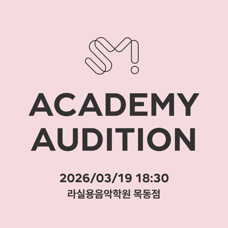 안녕하세요~ 항상 레슨생들의 만족을 위해 연구하는 목동 실용음악학원의 기준, 라실용음악학원 목동점입니다^^ 2월의 끝자락에서 3월에 예정인 내방 오디션들을 소개해 드리고 있어요. 이번에도 많은 분들이 기다리고 기대하실 오디션이 준비 되어 있습니다~! 걸그룹 '에스파', '하츠투하츠', 보이그룹 '라이즈' 등이 소속 되어 있는 SM 엔터테인먼트에서 다음 주인공을 찾습니다! 자세한 SM 엔터 내방 오디션 정보 알려드릴게요 ˖* 오디션 일시 ˖* 2026년 3월 19일(목) 오후 6시 30분 ˖* 오디션 장소 ˖* 서울특별시 강서구 등촌로13길 24 2층 * 학원 주소로 검색해서 오지 마시고 윗 주....... <img src="https://blogthumb.pstatic.net/MjAyNjAyMjdfNTAg/MDAxNzcyMTg1NDUyMTc2.pEXztYQDq04ilIBl2ZjbT9QRWMVZyxhXE_DmkOuvzbcg.gJr_dKlQVGkfjZTD-1MMu3WYyKFORoPY7kh6wv1x0lAg.PNG/260319_%B6%F3%BD%C7%BF%EB%C0%BD%BE%C7%C7%D0%BF%F8.png?type=s3" />