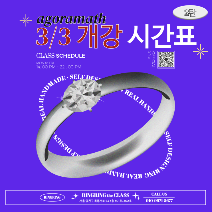 재빠른 아고라수학! 새로운 반이 업데이트된 2탄 시간표를 들고 왔습니닷 쿄쿜쿄쿄ㅛ 시간이 안 맞아 슬펐던 아둥이들 다 모여~~~~ 개강일은 3/3(화) !! 참고로 나도 이날 학교 간다...다들 힘내자 중등 과정 1-1 + 1-2 : 화목 15:30~ / 토 10:00~ 1-2 + 2-1 : 화목 18:00~ / 토 13:00~ 2-1 + 2-2 : 월수금 18:00~ 3-1 A : 월수금 16:00~ B : 월수금 16:00~ C : 월수금 19:00~ 고등 과정 -공수1 + 공수2 A : 월수금 16:00~ B : 화목 16:30~ / 토 14:00~ C : 화목 16:30~ / 토 16:00~ D : 월금 19:00~ / 토 14:00~ -3-1 + 공수1 : 화목 19:00~ / 토 13:00~ -대수반 문의~ 고등 내신 (외고반 별도 문의) -고1 공수1 A : 월금 19:00~ B : 월금 19:00....... <img src="https://blogthumb.pstatic.net/MjAyNjAyMjdfMjI1/MDAxNzcyMTc2MzY3NDc0.hCE2QuX_ZKJEBYdkaOxy1MIL_0AwfTbDbXkpDrG8NUwg.93xbRQPil0XWwiR8H8oDbigSL1WEjetBL-ZgXTLFWZwg.PNG/image.png?type=s3" />