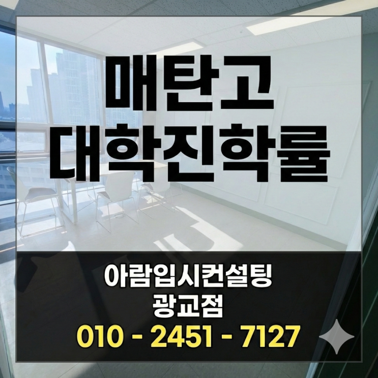 안녕하세요~ 아람입시컨설팅 광교점 소장입니다~~ 수원의 매탄고 대학진학률 살펴볼까요~ 4년제 대학진학률 54.5% 전문대학 진학률 15.2% 기타 29.9% 사실 4년제 대학은 인서울 대학만의 데이터가 아니기 때문에 50%이상이라고 해서 무조건 입결이 좋다고 볼 수는 없습니다~ 우리가 학교알리미를 통해 대학진학률을 살펴볼 때 꼭 봐야할 것을 알려드릴게요~!! 수원에 있는 학교들의 대학진학률을 서로 비교해 볼까요? 비교하실 때 4년제 대학이 아닌 전문대와 기타를 비교하시는게 중요합니다~ 예를들어 권선고 vs 매탄고 권선고 전문대 39.6% v 매탄고 전문대 15.3% 권선고 재수 6.5% vs 매탄고 재수 24.8% 전문대 진학률이 높고 재수 비율이 낮....... <img src="https://blogthumb.pstatic.net/MjAyNjAyMTlfMTIy/MDAxNzcxNDcxODMxNzQw.M-jqkEu1DaPBUjCcKGx0OFvtq3aLFjPUuqWEz76_0Ncg.L_wnlOg9ZW7ykHNJ32vRFopcjy3t1mjIuPjJs1y4O0wg.PNG/Gemini_Generated_Image_89mb0l89mb0l89mb.png?type=s3" />