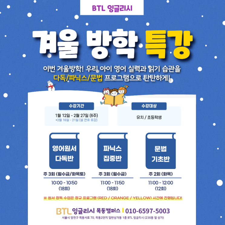 [BTL 잉글리시 목동] 겨울방학 특강 안내