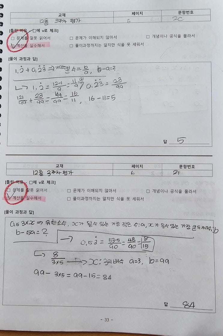 2월 27일 자랑합니다 – 깡~ 오답 실수노트(목동수학)