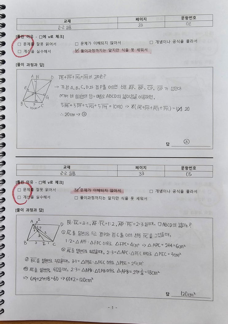 2월 25일 자랑합니다 – 깡~ 오답 실수노트(목동수학)