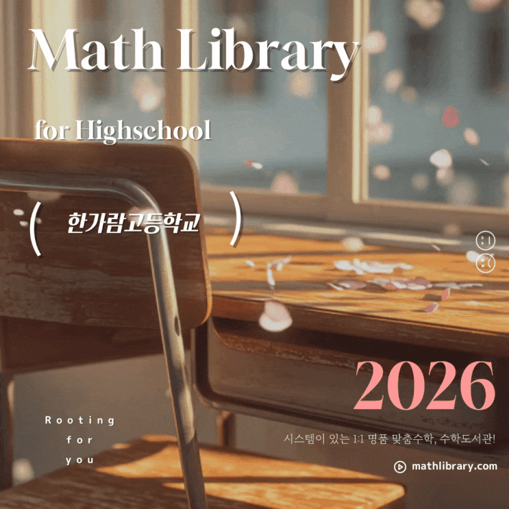안녕하세요, 학생의 MBTI까지 고려하는 명품 맞춤 수학 학원! 강사 매칭·교재매칭·나만의 학습 로드맵으로 내신+수능 모두 잡는 수학도서관입니다 :) 아직 바람이 차갑긴 하지만, 그래도 왠지 그 속에서 봄 기운이 느껴지는것 같기도 하고~ 새 학기가 성큼 다가온게 체감되죠?^^ 오늘은, 수학도서관에도 많은 친구들이 다니고 있는! 목동 한가람고등학교의 기본 정보부터 수학 내신 스타일까지! 소개 드려 볼게요^^ 학교 기본정보 & 위치 한가람고등학교는 서울 양천구 목동에 위치한 일반계 고등학교예요. 한가람고는 원래 자율형 사립고(자사고)로 지정되었던 학교였지만, 2022학년도 신입생부터는 자율형 사립고 운영을 종료하고 일반고로....... <img src="https://blogthumb.pstatic.net/MjAyNjAyMjVfMjMg/MDAxNzcyMDAzMDY0MjA1.g8hIFXMs8vweSeaYmF1pDMvgjeJgKHZEff5cUKBR-pUg.yI727-KpZoXYXRAg0rZpi7lXpMixYSF1cCidihYw3Eog.GIF/%B8%F1%B5%BF-%B1%A4%C0%E5-%B8%F1%B5%BF-2%B4%DC%C1%F6-%B0%ED%B5%EE%BC%F6%C7%D0-%C0%FC%B9%AE_-%B8%C2%C3%E3%BC%F6%C7%D0-1_1-%B8%ED%C7%B0-%BC%F6%C7%D0%B5%B5%BC%AD%B0%FC.gif?type=s3" />