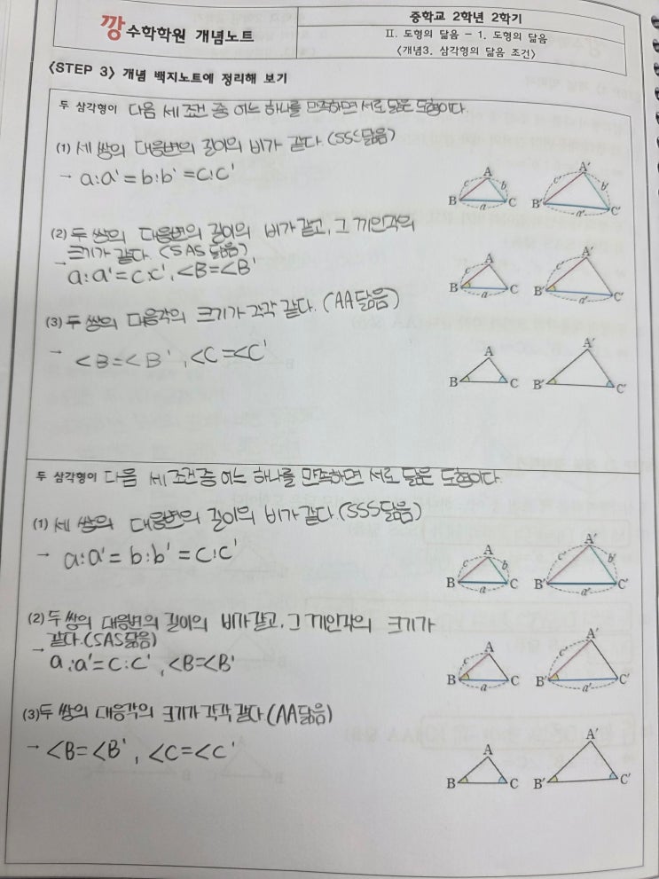 “개념이 정리되어야 실력이 자랍니다” 깡~학원에서는 모든 수학 공부의 출발을 ‘개념부터 다시 써보기’에서 시작합니다. 학생들이 단순히 공식을 외우는 것이 아니라, 스스로 이해하고 정리하는 습관을 만들기 위해 ‘개념백지노트’를 매 단원마다 작성합니다. ✏️ 깡~학원의 개념백지노트란? ‘개념백지노트’는 말 그대로 백지 위에 개념을 다시 써보는 학습법입니다. 교재의 내용을 그대로 옮겨 적는 것이 아니라, 학생이 자신의 언어로 개념을 다시 구성하며 “정확히 이해했는가?”를 스스로 점검하게 합니다. 목동수학에서 이 노트는 단순한 필기노트가 아니라, 사고력과 표현력을 동시에 키우는 수학 노트입니다. STEP별로 완....... <img src="https://blogthumb.pstatic.net/MjAyNjAyMjRfMjI5/MDAxNzcxOTAwMzE5NTA4.RJw5XuwVIwyf8ZpA9433g_T0UH7XzhJ4qsB9gNgsmSkg.nwzUfvZNV1njM9y8DTXpaQhcG8v3GUTiZcogiMqK9GEg.JPEG/KakaoTalk_20260210_171431015_07.jpg?type=s3" />