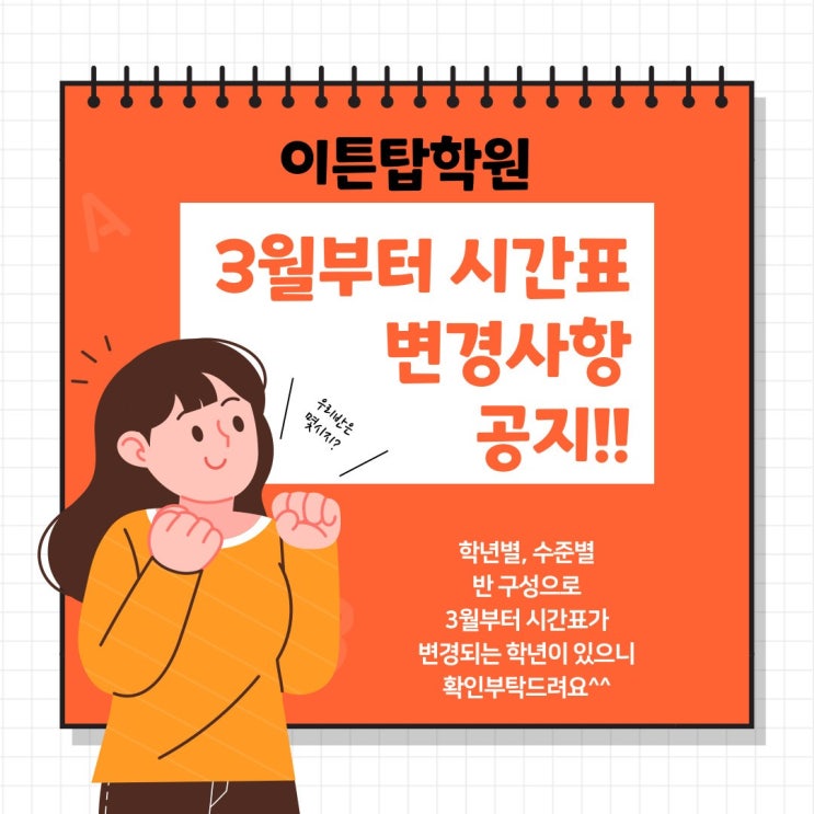 [이튼탑학원] 3월부터 변경되는 시간표 안내입니다.-2026년