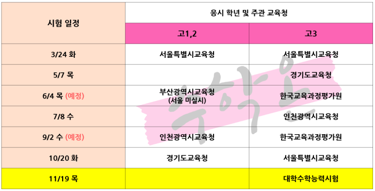 안녕하세요. 목동 수학온 입니다. 2026년 모의고사 및 수능 일정이 발표되었습니다. 수학온에서는 특강 수업과 정규 수업 매시간마다, 모의고사 및 양천&강남 학교 기출을 풀어보며 공부하고 있습니다. 실전에 강한 수학온에서, 여러분의 학습을 더욱 효과적으로 지원하며, 2026년 한 해도 열심히 공부하여 미래를 더 탄탄하게 준비하도록 하겠습니다. 특히, 모의고사 일정에 맞춰 맞춤형 학습 계획을 세우고, 다양한 문제를 풀어보며 실력을 쌓아가길 바랍니다. 여러분의 성공을 위해 최선을 다하겠습니다. 수학온의 꼼꼼한 학생 관리, 이렇게 다릅니다! ⭐ 학생별 약점 분석 → 맞춤형 보완 학습 단순히 수업만 하는 것이 아니라, 학생별로....... <img src="https://blogthumb.pstatic.net/MjAyNjAyMjFfMjU0/MDAxNzcxNjUwODMyMjY0.eoXmXzImXXVgw_hwnmdV9vtVrkk6KiwDYoXi78x87e0g.dq9pTqpinePtSlIFXl35tYu7ilV3Zsyf6e1yJ3GSaxEg.PNG/image.png?type=s3" />