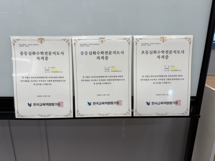 안녕하세요 강아 청수캠입니다! https://blog.naver.com/cacdganga/224149009392 지난 연말에 저희 학원에서 본사에서 진행하는 심화과정 지도교사 자격증 시험에 도전했다는 소식 전해드렸었는데요! 드디어 기다리던 자격증이 도착했습니다. 그리고 결과는… ✨ 전원 합격! 선생님들의 노력과 열정 덕분에 기쁜 소식을 전할 수 있게 되었습니다. (여기 자격증 사진) ⸻ 심화과정 지도교사 자격증이란? 심화과정 지도교사는 단순한 문제 풀이가 아니라 ✔ 개념을 깊이 이해하고 ✔ 다양한 풀이 방법을 지도하며 ✔ 상위권 학생들의 사고력까지 확장할 수 있는 심화 수학 지도 능력을 검증하는 과정입니다. 시험 준비 과정에서도 선생님들이 함께....... <img src="https://blogthumb.pstatic.net/MjAyNjAzMTNfMTc1/MDAxNzczMzg2MjE3MzIw.Hmt8bqHhyrBbnFEDYYXARNxa9dRMcnp92QvTtq-sNysg.qBH9GFv2srYaWk-uu3UJ-bVWAERbdji2c06soJOHlfsg.PNG/image.png?type=s3" />