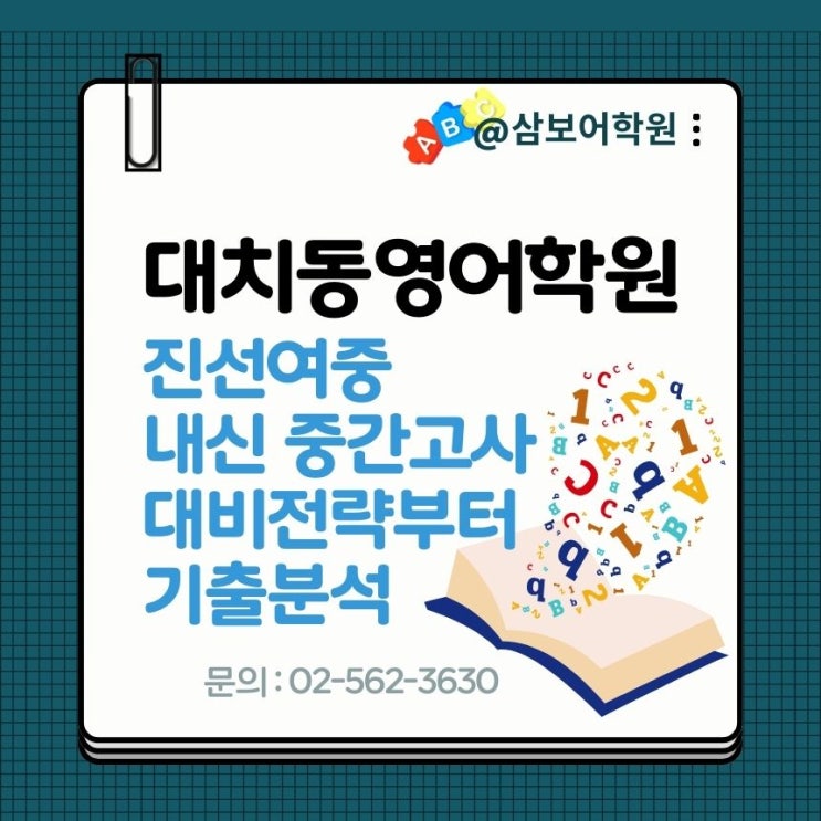 대치동영어학원 진선여중 내신 중간고사대비전략부터 기출분석은 삼보어학원에서!
