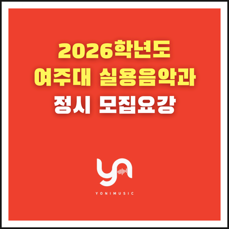 여러분, 안녕하세요! 천안 동남구 음악 부문 3년 연속 우수 평가! 개그맨 이봉원 님과 SBS 예능프로그램 '동상이몽 2'에도 출연한 요니뮤직 천안 실용음악학원입니다 :) 오늘은 '2026 여주대학교 실용음악과 정시 모집요강'에 대한 전형 방법, 지원 자격에 대해 총정리 해드리려고 합니다! ▶ 모집 인원 -> 건반 6명, 기타 8명, 드럼 7명, 베이스 5명, 보컬(남) 10명, 보컬(여) 10명, 작곡 10명, 싱어송라이터 10명, 컴퓨터음악 8명, 탑라이너 3명, 엔지니어 2명, 프로페셔널 뮤직 5명 ▶ 전형 일정 ● 원서접수 : 25.12.29(월) ~ 26.1.14(수) 인터넷 접수(23:59까지) 및 방문 접수(우편 접수 불가) ● 서류 제출 : 26.1........ <img src="https://blogthumb.pstatic.net/MjAyNTEyMDNfMTQx/MDAxNzY0NzYyODgwOTQz.evkRrlHwzFeviD3qLi2O3mV_Puoz5hiH_KmzNpHMZ4Ug.JYY3CglJ1JjJMcELhyX97oeYkccpd1AGoAXmWPJxD_Yg.PNG/%BF%A9%C1%D6%B4%EB.png?type=s3" />