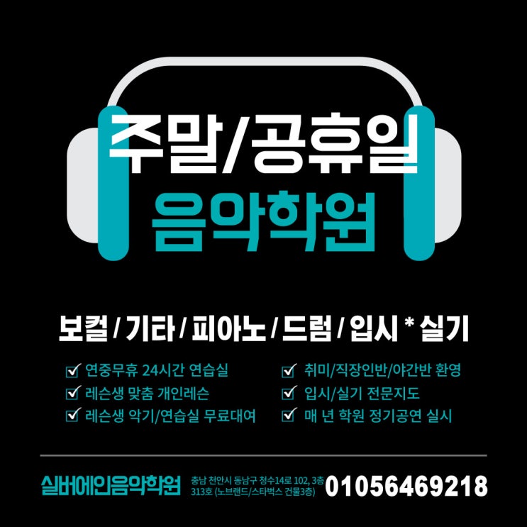 천안 성인 실용음악학원/ 주말 공휴일 연중무휴 연습실