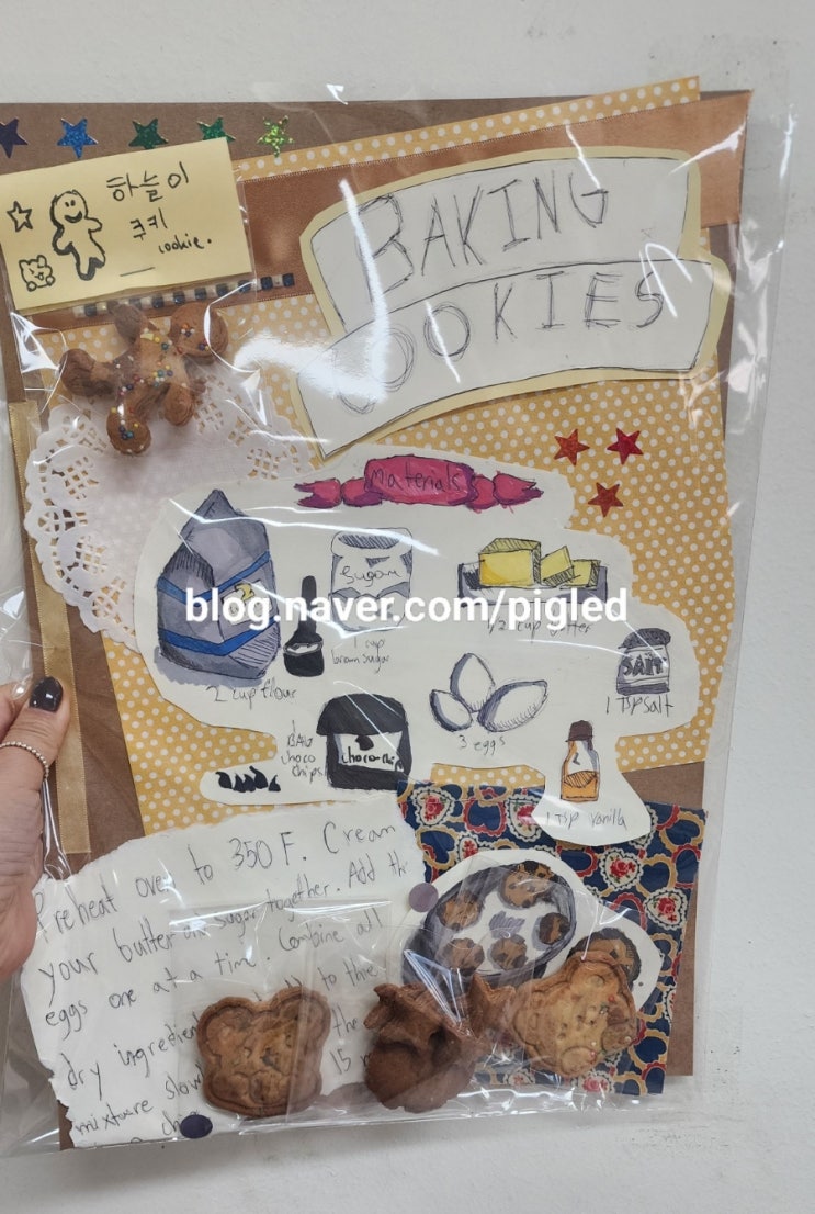 쿠키 만들기 수업 오늘 우리 아이들과 함께한 쿠키 만들기 수업은 정말 즐겁고 따뜻한 시간이었어요. 직접 그린 쿠키 레시피 카드에 색연필로 재료들을 예쁘게 그려 넣고, 그 레시피를 보며 실제로 쿠키까지 만들어보는 특별한 활동이었습니다. 아이들이 가장 신나했던 순간은 버터를 보들보들하게 풀고, 설탕과 함께 섞이기 시작할 때 “와, 크림처럼 변해요!” 하며 놀라던 모습이었어요. 또 반죽에 스프링클이나 작은 데코를 올리며 자기만의 쿠키를 만드는 과정에서 아이들 개성이 톡톡 튀었습니다. 이번 수업에서는 ✔ 레시피를 그림으로 표현하며 관찰력·표현력 키우기 ✔ 직접 쿠키 반죽 만들어 굽기 ✔ 완성된 쿠키를 예쁘게 포장해....... <img src="https://blogthumb.pstatic.net/MjAyNTEyMDNfMjg3/MDAxNzY0NzYxNTE5MDg5.rP8eXtyPBrsU1eGRrRWaBxZBwLGFODebNLdcAc_pTGYg.xUUnhsDO1iQFZL1xisB177lLX1vCNHBW5rX7htlQDZ0g.JPEG/900%A3%DF1764761517345.jpg?type=s3" />