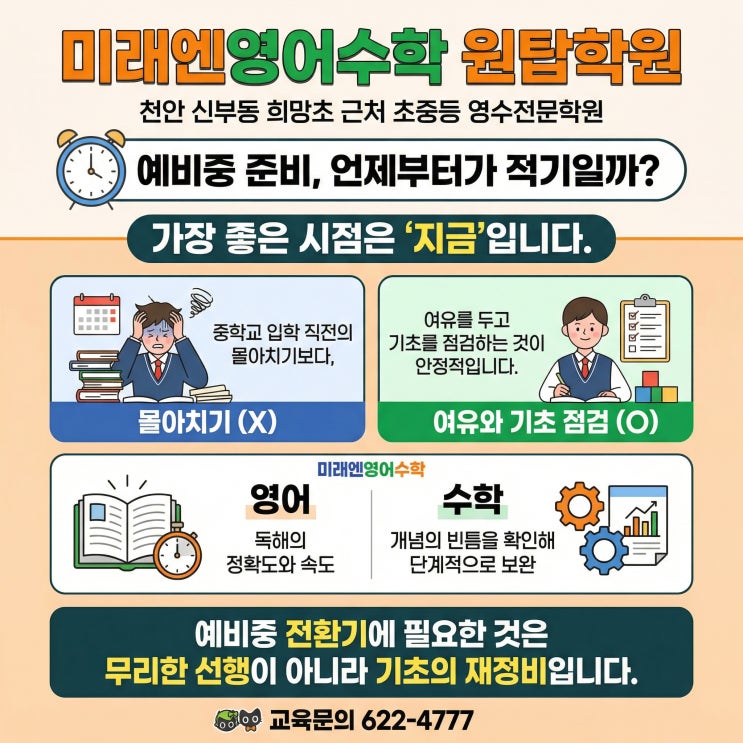 신부동 희망초 근처 초중등 영수학원 예비중학생, 중학교 올라가기 전 꼭 준비해야 할 영어·수학 로드맵