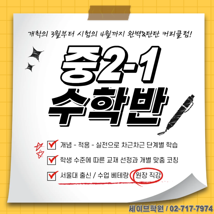 마포구 수학 전문 세이브학원) 중2-1 수학 중간고사 대비반 안내