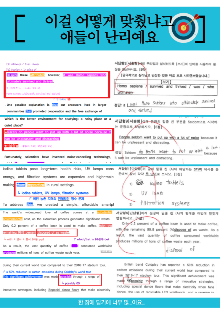 선생님… 영어 너무 많아요. 어디부터 해야 돼요? 고등 올라가면 아이들 입에서 제일 먼저 나오는 말입니다. 진짜예요. 책상이 아니라 벽처럼 느껴진대요. 교과서 + 본문 해석 + 어휘 + 문법 + 서술형 + 수행평가까지… 양은 많은데 시간은 없고, 문제는 어떻게 해야 하는지 모르니까 더 막막해져요. 저도 이 시기 학생들 마음 잘 알아요. 그래서 저는 학생이 헤맬 시간을 줄여주는 것부터 시작합니다. ✔ 아이들이 실제로 겪는 문제 “본문이 너무 많아서 어디가 중요한지 모르겠어요.” “문법은 배웠는데 시험에선 다르게 나와요.” “기출이 중요하다는데… 학교마다 다르다던데요?” “그냥 열심히 했는데 점수가 안 나와요.” 이건 의지가....... <img src="https://blogthumb.pstatic.net/MjAyNTExMTZfMzgg/MDAxNzYzMjIwMTg1MDE4.MXUwQG29s5evYw36lXnrYMaBFoXyekhPLnJSimaZmv4g.luhYJG96Y0i9W7McmSbrBU_qov93MHifS9joHDDjQ3og.PNG/KakaoTalk_20251116_002245547.png?type=s3" />