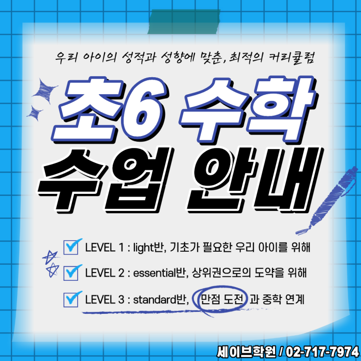 [세이브학원] 초6 수학 수업 안내 / Level별 클래스 소개