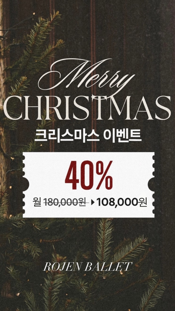 안녕하세요 곧 다가오는 크리스마스를 기념하여 천안성인발레 전문 학원인 로잔발레가 선물을 준비 했어요 연말이 다가오면서 몸도 마음도 지치기 쉬운 시기지만, 이럴 때일수록 내 몸을 위한 제대로 된 운동이 필요하죠 특히 요즘 천안에서 다이어트 + 체형교정 + 코어 강화 이 세 가지를 동시에 해결할 수 있는 운동으로 성인발레가 정말 인기가 많아요! 그래서 로잔발레에서 크리스마스 한정, 단 12월에만 진행되는 40% 할인➕슈즈 증정(선착순 10명) 이벤트 준비했습니다. ✔️ 크리스마스 특별 할인 월 180,000원 → 108,000원 (40% 할인) ➕단 10명만! 발레 슈즈 증정(선착순 마감) 성인발레 입문을 망설였던 분....... <img src="https://blogthumb.pstatic.net/MjAyNTExMjZfMjAy/MDAxNzY0MTI1ODAyNTU3.oKl-y1Ws1ETksGXrZ-uMYKXC0E-cHSy2KKzKQPourOIg.PGrpbrhPqkgrowlHrq8Ev7gdDzskpVeb0PCKncZ1woMg.JPEG/247CAC1E%A3%AD0FD8%A3%AD4226%A3%AD9C81%A3%AD7FDEDCE7ED84.jpg?type=s3" />