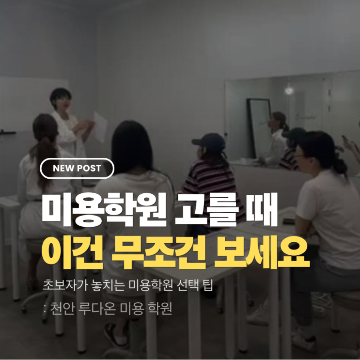 안녕하세요, 루다온미용학원입니다. 미용 국가자격증을 준비하려고 마음먹고 나면 가장 먼저 고민되는 것이 바로 어떤 학원을 선택해야 하는지입니다. 수강료, 거리, 후기만 보고 결정했다가 중간에 다시 옮기는 분들도 정말 많습니다. 오늘은 처음 시작하는 분들도 실패하지 않도록 미용학원 선택 시 확인해야 할 5가지 기준을 정리해드리겠습니다. 왜 학원 선택이 중요한가? 미용 국가자격증은 단순 이론이 아니라 실기 평가 기준 + 작업 순서 + 감점 요소까지 정확히 맞춰 준비해야 합격할 수 있습니다. 같은 시간을 공부해도 어떤 시스템에서 배우느냐에 따라 합격 속도가 크게 달라집니다. 소수정예 수업인지 확인하기 수강생이 너무 많으면....... <img src="https://blogthumb.pstatic.net/MjAyNjAyMDJfMTYx/MDAxNzcwMDE2MTIzODQ5.JzQsse9ONHc6PyidslcuMNoxCZmM1OsVkMPNUgoo0Iog.0C0V2HlsHCnpazdFZU3pqSEskN7YPqYBgojhLcA-5pMg.PNG/%3F%9D%B0%3F%83%89%EA%B3%3F_%EA%B2%3F%3F%A0%95%3F%83%89_%EA%B9%94%EB%81%94%3F%95%9C_%3F%82%AC%EC%A7%84%EB%B0%B0%EA%B2%3F_SNS_%EB%B8%94%EB%A1%9C%EA%B7%3F_%EC%B9%B4%EB%93%9C%3F%89%B4%3F%8A%A4_%3F%3F%3F%9D%B4%3F%3F_%3F%8F%AC%3F%8A%A4%3F%8A%B8_%3F%8D%B8%3F%84%A4%3F%9D%BC_%3F%9D%B8%3F%8A%A4%3F%3F%EA%B7%B8%EB%9E%A8_%EA%B2%8C%EC%8B%9C%EB%AC%3F_%2811%29.png?type=s3" />