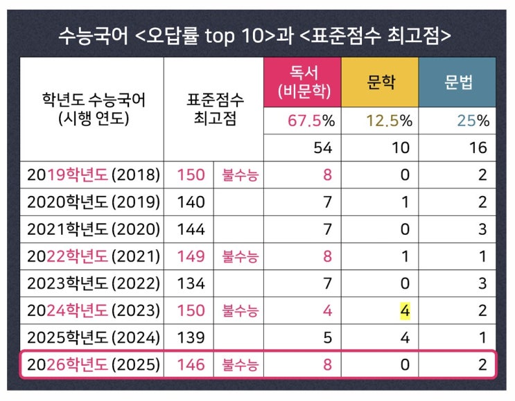 안녕하세요? 솔루니 천안아산충남 교육국입니다. 요사이 수능 결과 중 만점맞은 학생에 대한 관심이 뜨겁습니다. 스스로 흔들리지 않고, 주도적으로 공부계획을 세워, 국어,영어,수학을 꾸준하게 공부한 친구들이 만점을 맞았다는 소식이 있습니다. 그럼 이번 11월에 치뤄진 26학년도 수학능력시험에 관해 정리해볼까요?^^ 이번 26학년도도 역시 불수능으로 국어와 영어가 변별력이 될 것이라고 합니다. 국어가 당락 가를듯...!!! 오답률 1위가 역사 비문학인 독서영역 !!!! 솔루니로 비문학 기본 읽기 구조 훈련을 하자!!! 수능 문학은 솔루니 책읽기부터 차근차근!! 영차영차!! 수능 고득점을 위해서는 문법도 확.실.하.게. 준비!!! 진정한 책....... <img src="https://blogthumb.pstatic.net/MjAyNTEyMDhfMTEz/MDAxNzY1MTg1MDcyNTk0.kXEdsCKeIraGhBzEmDI0_Uci1bEpHu0fr4EJbfXyqQAg.jqzXWuzbyJYKH1G_Cj68GFOwJaVvmO8iBwWu_BMyJgUg.JPEG/%BC%F6%B4%C9_1.jpg?type=s3" />