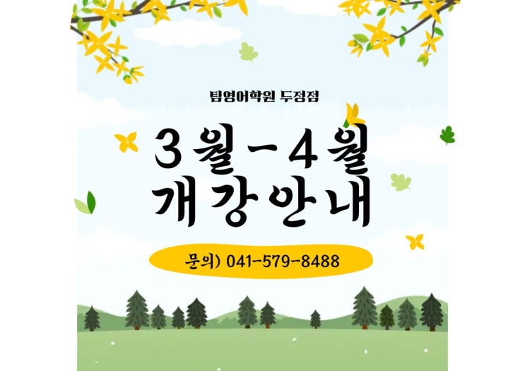 [공지] 천안성인영어회화 팀영어학원 두정점 3월 4월 수시간표 수업일정표 커리큘럼 안내