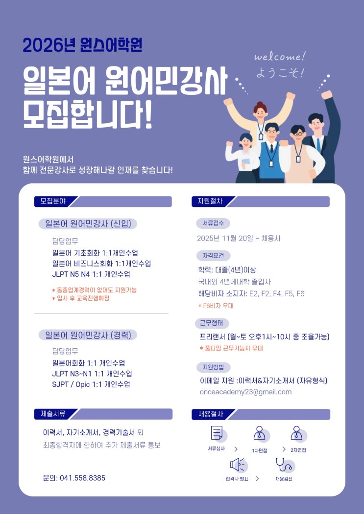[2026년 원스어학원] 일본어 원어민강사 채용