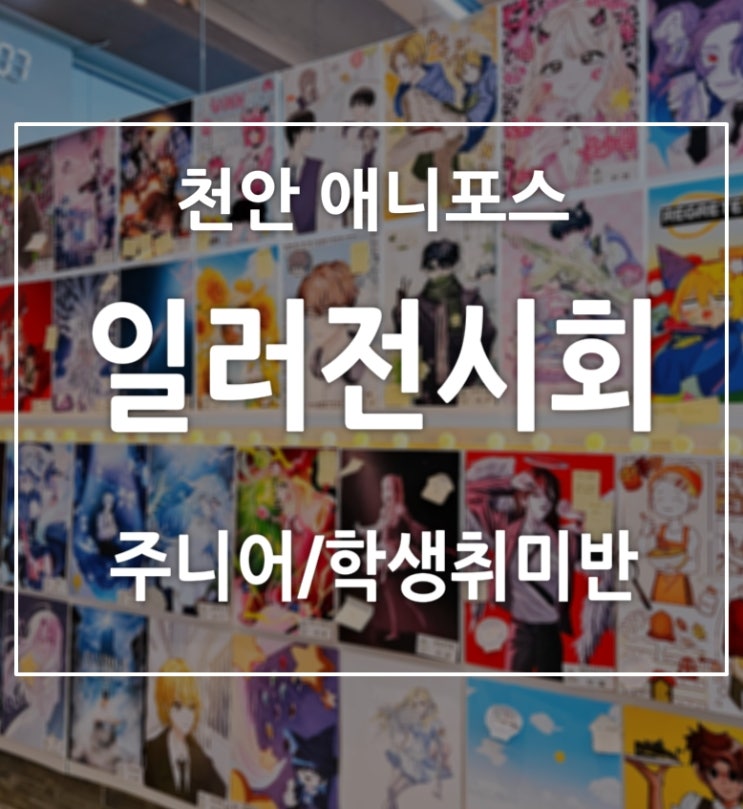 안녕하세요~ 천안 애니포스 만화학원입니다!! 천안 애니포스에서는 학생취미/주니어취미반이 있습니다!! 기초 드로잉을 기반으로 커리큘럼 수업 및 클립 스튜디오로 디지털 일러스트를 그리고 있는데요~ 연말 그림 전시회를 열었습니다!! 두 달간의 작업기간으로 자신의 그림을 남들에게 선보이는 자리로, 평소 그림의 컬리티보다 좀 더 완성도 있게 보정단계를 배우면서 그림을 완성하였습니다. 그럼 한번 작품을 감상해보실까요?~ 주문제작한 그림들이 도착했어요!! 보드 인쇄로 종이가 아니라 액자처럼 가질 수 있어요!! 약 3주간 천안 애니포스 내부에 전시될 예정입니다!! 많은 관심 부탁드립니다!! 60점 이상의 작품들이 학원 입구에 들어....... <img src="https://blogthumb.pstatic.net/MjAyNTEyMDZfNTUg/MDAxNzY0OTk5NTg0ODQ4.SaVTqlOY0EgIBLkdFSQtWVw7PgmE3sbfjNYEJXJC1aIg.wiHk7FkuPjXTh3SFmcWG2oFTIw0xcLXFqmKIzLkRxZog.JPEG/%B4%EB%B9%AE.jpg?type=s3" />
